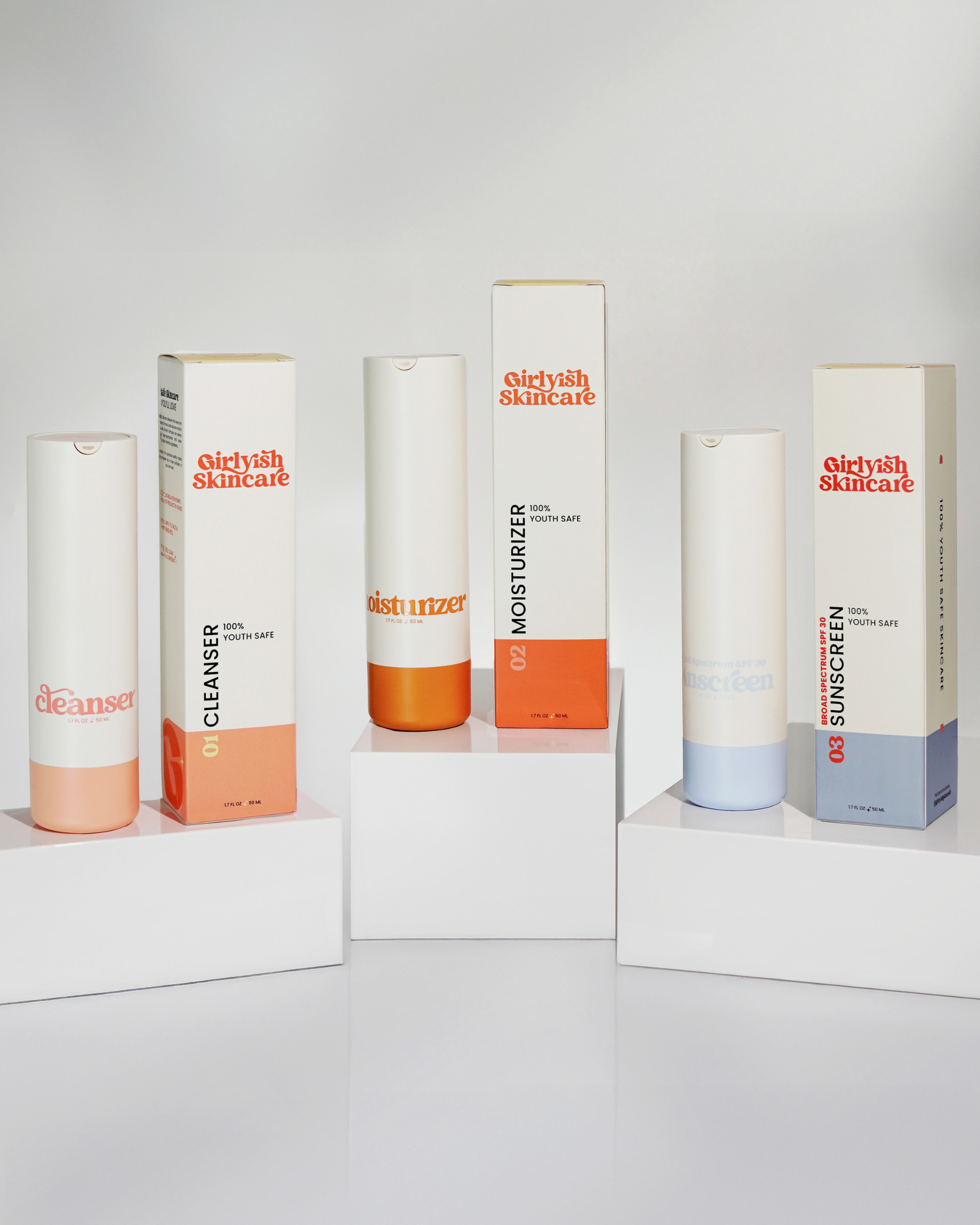 Simplify your skincare with the Girlyish three-step routine featuring our cleanser, moisturizer, and mineral sunscreen. This trio is designed to cleanse, hydrate, and protect your skin for a radiant, healthy complexion. Start with a creamy cleanser to wash away makeup, dirt, and impurities while nurturing your skin. Follow up with our nourishing moisturizer designed to hydrate your skin while providing lasting comfort. Finally, protect your skin with our lightweight mineral sunscreen formulated with Zinc Oxide. With just three simple steps, this routine is perfect for young, developing skin!